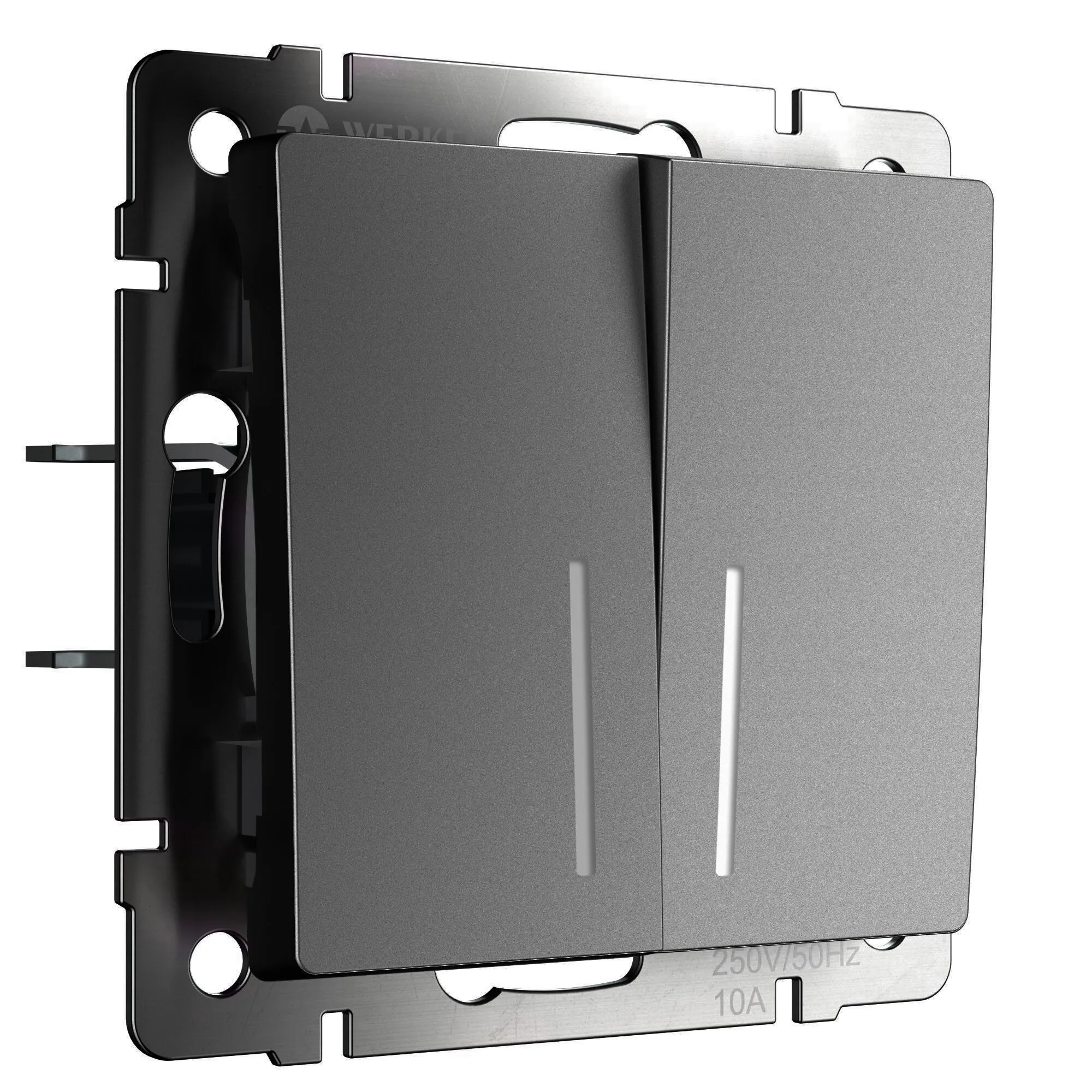 Выключатель двухклавишный проходной с подсветкой Werkel графит матовый — управление светом из двух точек + комфорт в темноте