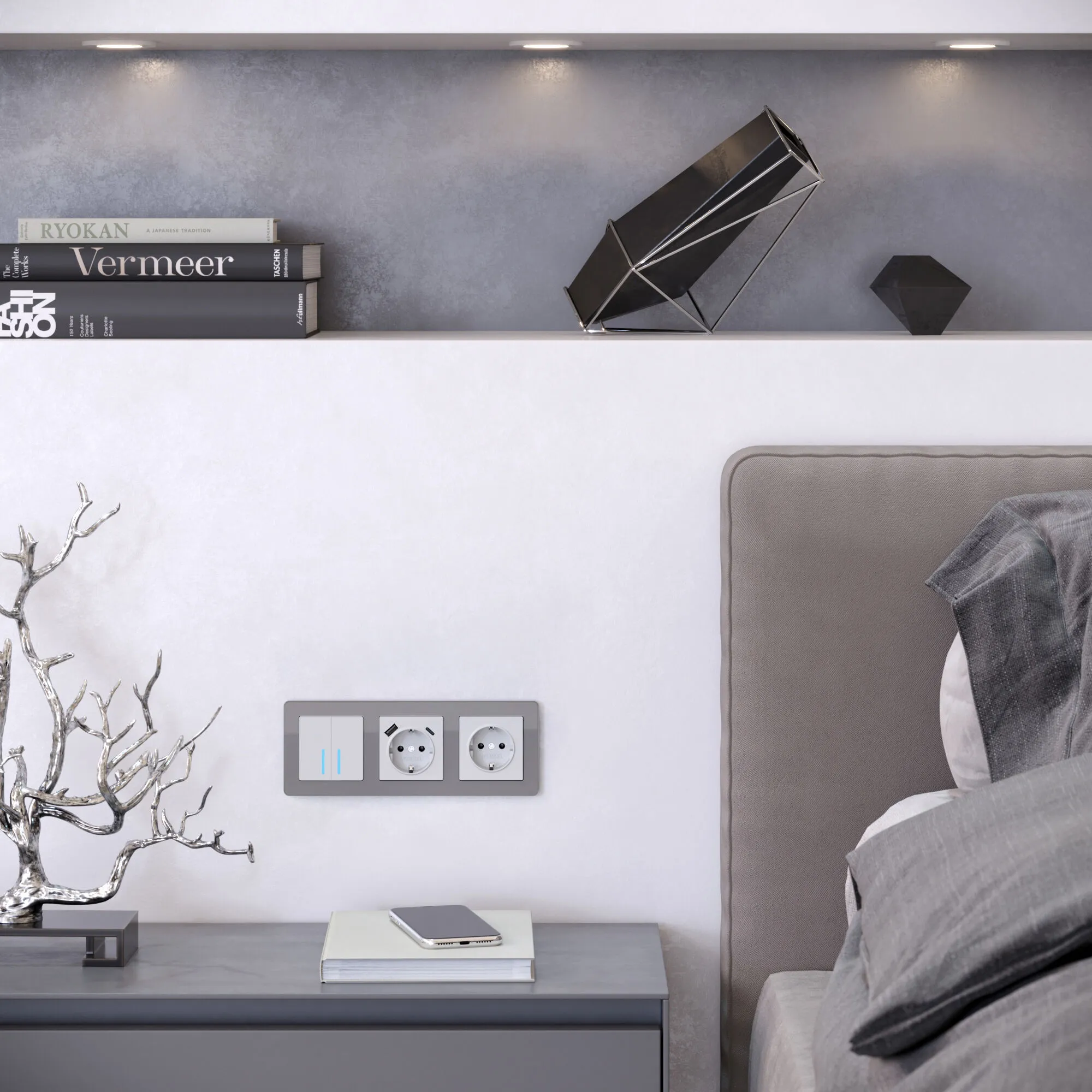 • Стильный эффект парения — изогнутая форма основания создаёт ощущение лёгкости и воздушности, даже при плотном прилегании к стене.