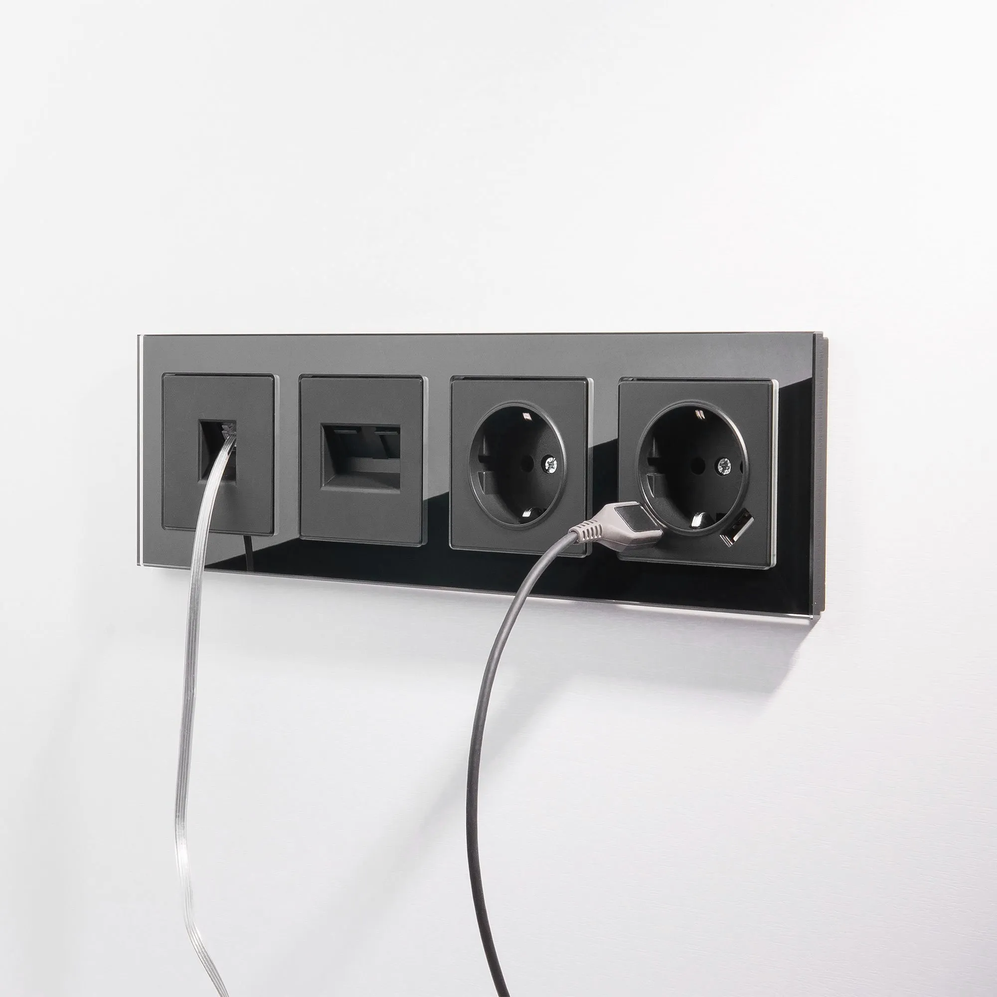 После монтажа остаётся видна только лицевая панель и декоративная рамка, что делает розетку практически незаметной на стене. Благодаря полной совместимости со всеми рамками Werkel, вы легко подберёте цвет и стиль под любой интерьер — от классического до ультрасовременного.