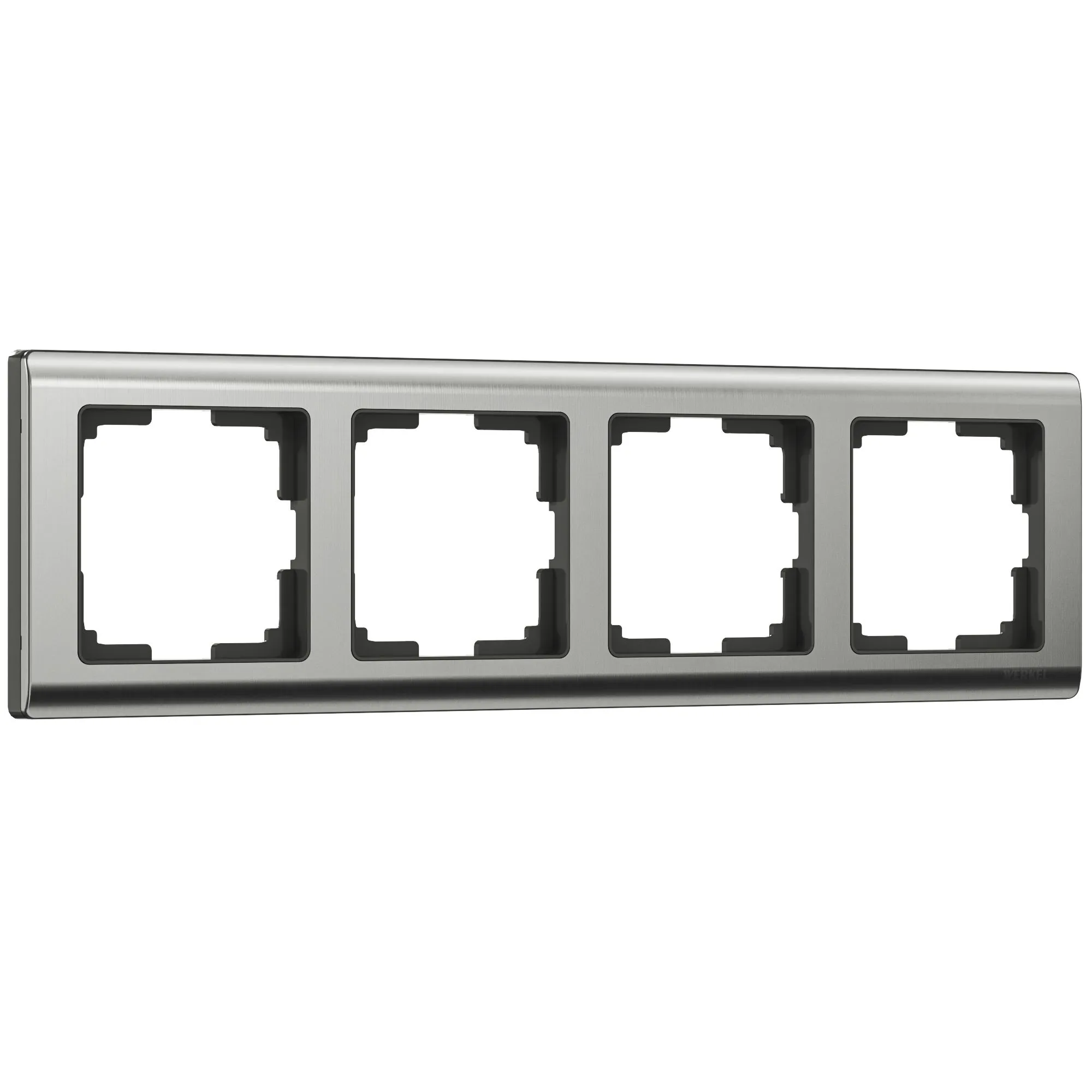 Рамка 4 поста Metallic W0041602 - стильная и надежная рамка для розеток и выключателей от бренда Werkel предназначена для установки на одну электрическую точку. Изделие выполнено из высококачественного металла с элегантным металлическим покрытием, что обеспечивает долговечность и устойчивость к механическим повреждениям.