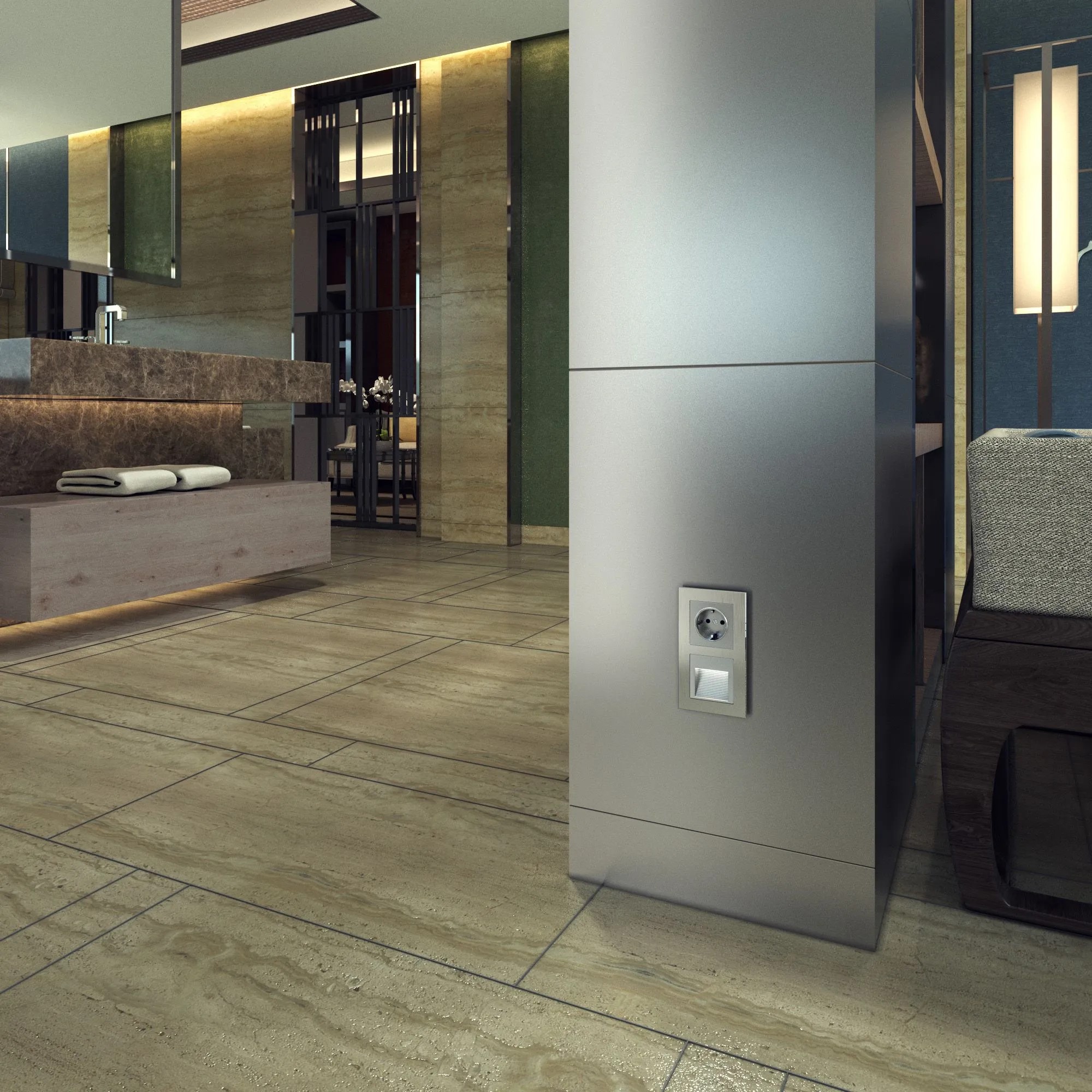 Индастриал — это не просто интерьер, а гимн промышленной эстетике: открытые трубы, бетонные стены, стальные балки, функциональность без прикрас и минимум декора. В таком пространстве всё должно быть прочным, простым и честным — включая розетки и выключатели.